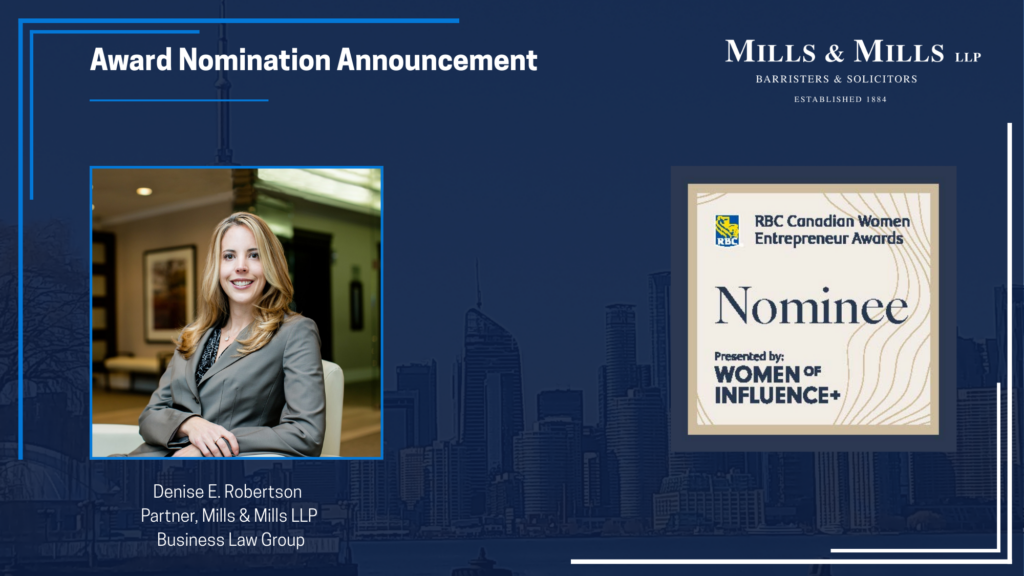 We are proud to share that Denise Robertson, Partner in our Business Law Group, has been nominated for the 34th annual RBC Canadian Women Entrepreneur Awards. This nomination recognizes Denise’s exceptional leadership, deep commitment to her clients, and the meaningful impact she continues to make within our firm and the broader business community.